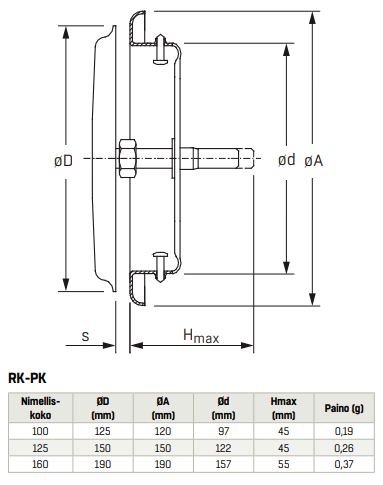 RK-venttiilin kansi on tervaleppää, runko polttomaalattua terästä ja kierrekara sinkittyä terästä.