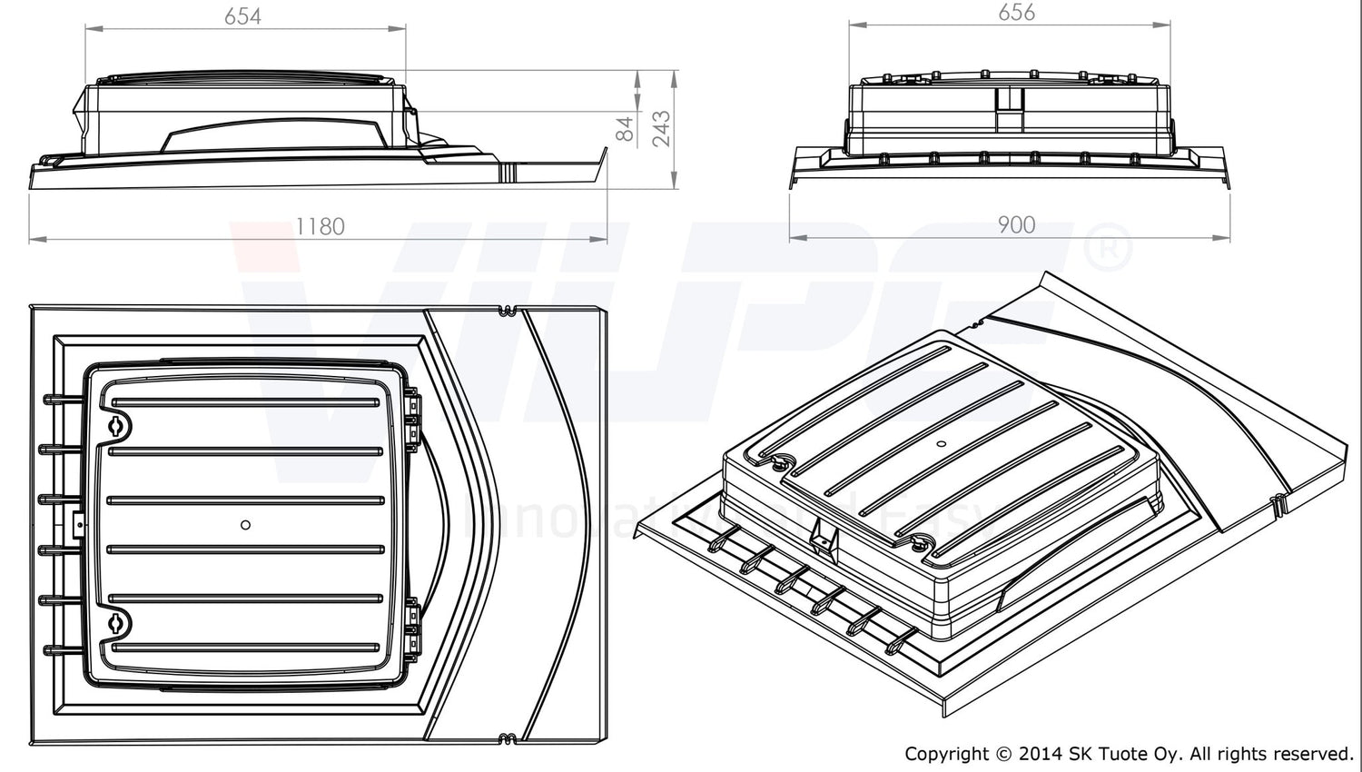 Teollisten muotoilijoiden kanssa yhteistyössä suunniteltu kattoluukku on valmistettu ruiskupuristusmenelmällä, jonka ansiosta tuote on tasalaatuinen ja -vahvuinen läpi koko rakenteen. Se myös sulautuu visuaalisesti hyvin kattoon kuin kattoon. Yksi ja sama tuote soveltuu kaikille pelti- ja tiilikatoille. Joustava taitos helpottaa asennusta harjaelementin alle. Käytetään katon ja ullakkotilan välisenä kulkureittinä.