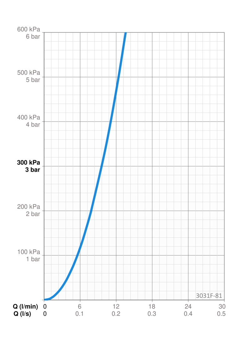 - virtaama 300 kPa: 0.16 l/s