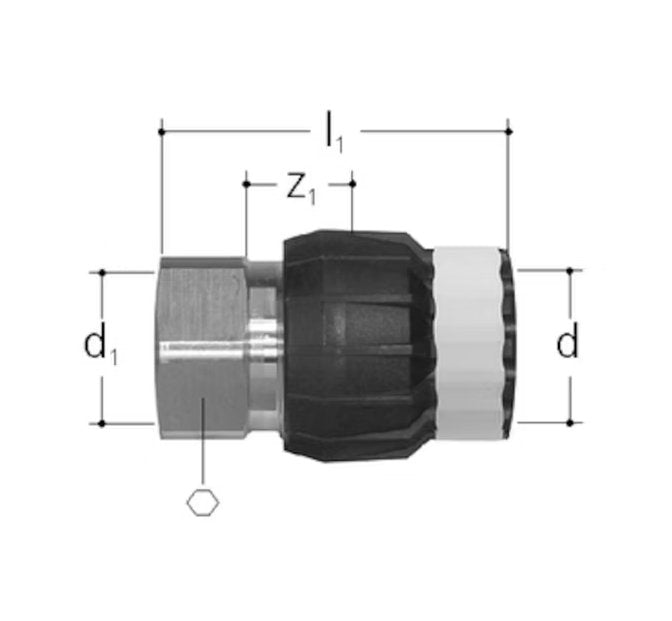 Valmistusmateriaalina pronssiseos, varustettu sisäkierteellä ja muovisella MT-kartioliittimellä Sanipex- d16/d20 ja Sanipex MT-putkia varten.