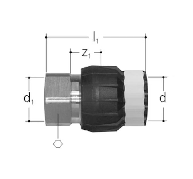 Valmistusmateriaalina pronssiseos, varustettu sisäkierteellä ja muovisella MT-kartioliittimellä Sanipex- d16/d20 ja Sanipex MT-putkia varten.