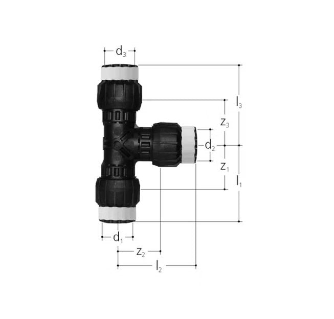 Kompo T-haaraliitin GF 50x50x50 PPSU/PA