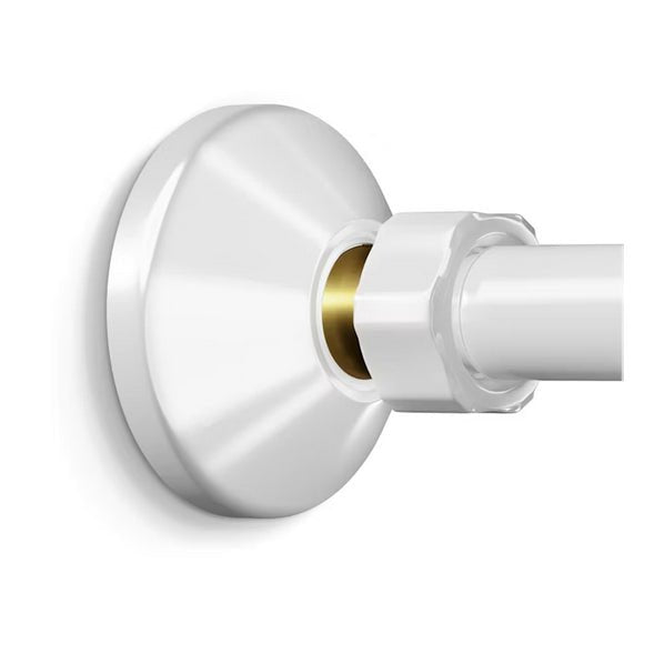 Suihkuhanan asennukseen tarkoitettu epäkeskoliitinpari suluilla. Sisältää kaksi liitintä sekä valkoiset peitelaipat.