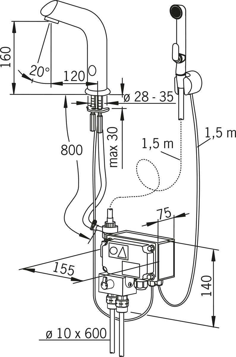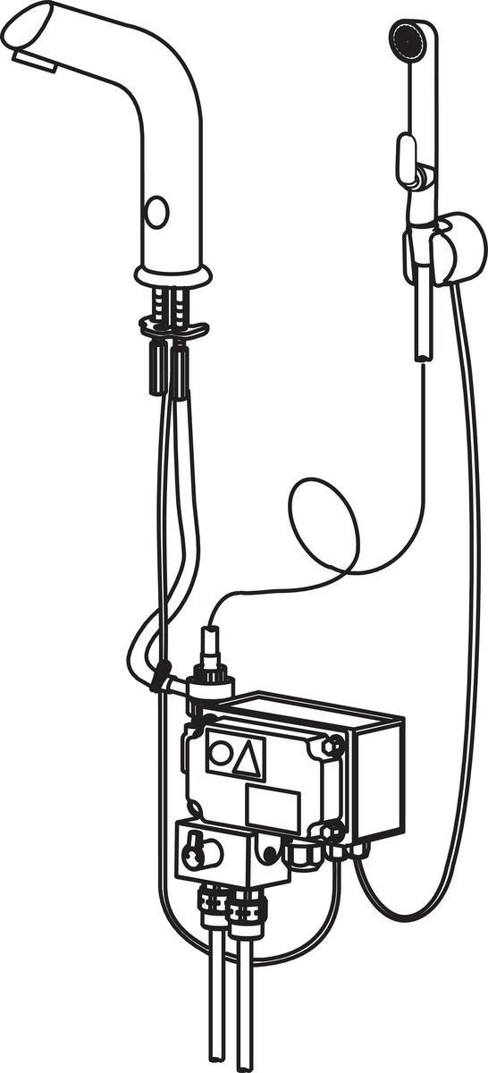 Oras Electra 6205Z on kosketusvapaa pesuallashana, jossa on sekoitusventtiili ja Bidetta-käsisuihku. Hanassa on roskasihdit, yksisuuntaventtiilit ja PEX-kytkentäputket. Bluetooth-yhteyden ansiosta hanan asetuksia on helppo seurata ja muuttaa, tunnistusetäisyyttä voidaan säätää myös suoraan hanasta. Ohjausyksikön ja Bidetta-käsisuihkun etäisyyden ollessa yli 2 m, varmista putkidimensiot Orakselta. Käsisuihkun ripustimeen on saatavana vaihtojohto 2 - 5 m (Oras-nro 197033/m). Tarvittaessa saatavana myös pidemmällä valokennokaapelilla (+20 EUR alv 0 %). Sähköasennus 24/48 V, virtalähde hankittava erikseen: Oras-nro 290005 (pistotulppamuuntaja), Oras-nro 290004 (muuntaja).