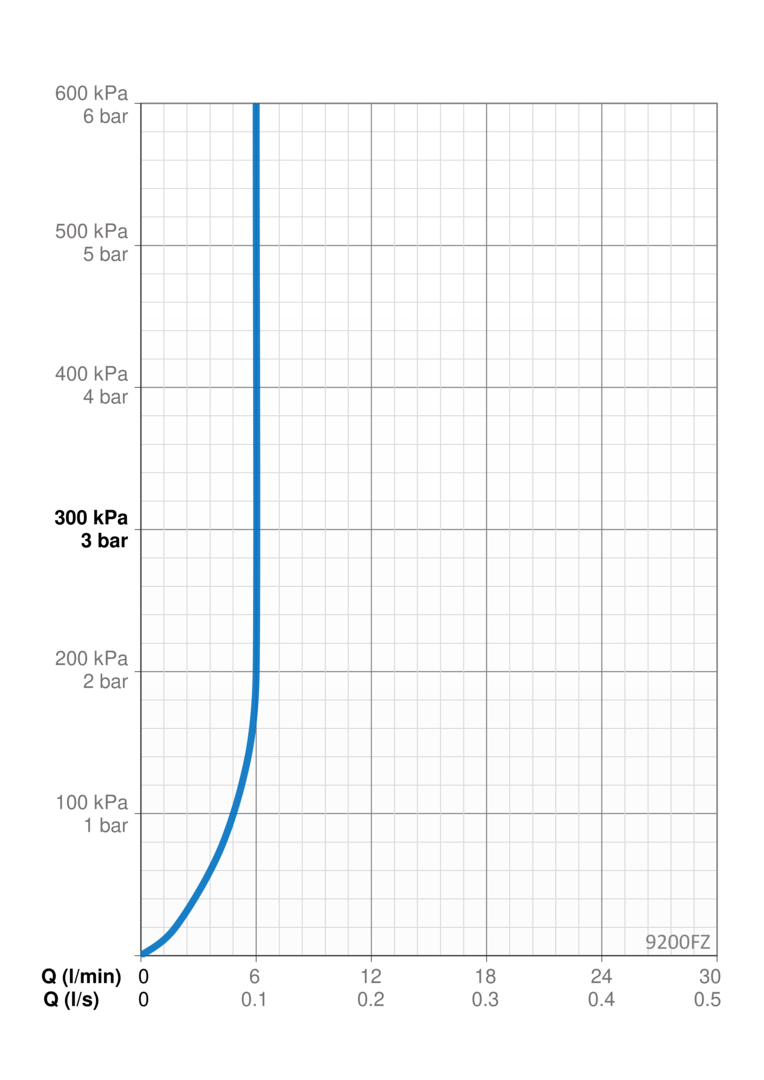 - virtaama 300 kPa (virtauksenrajoittimin): 0.1 l/s