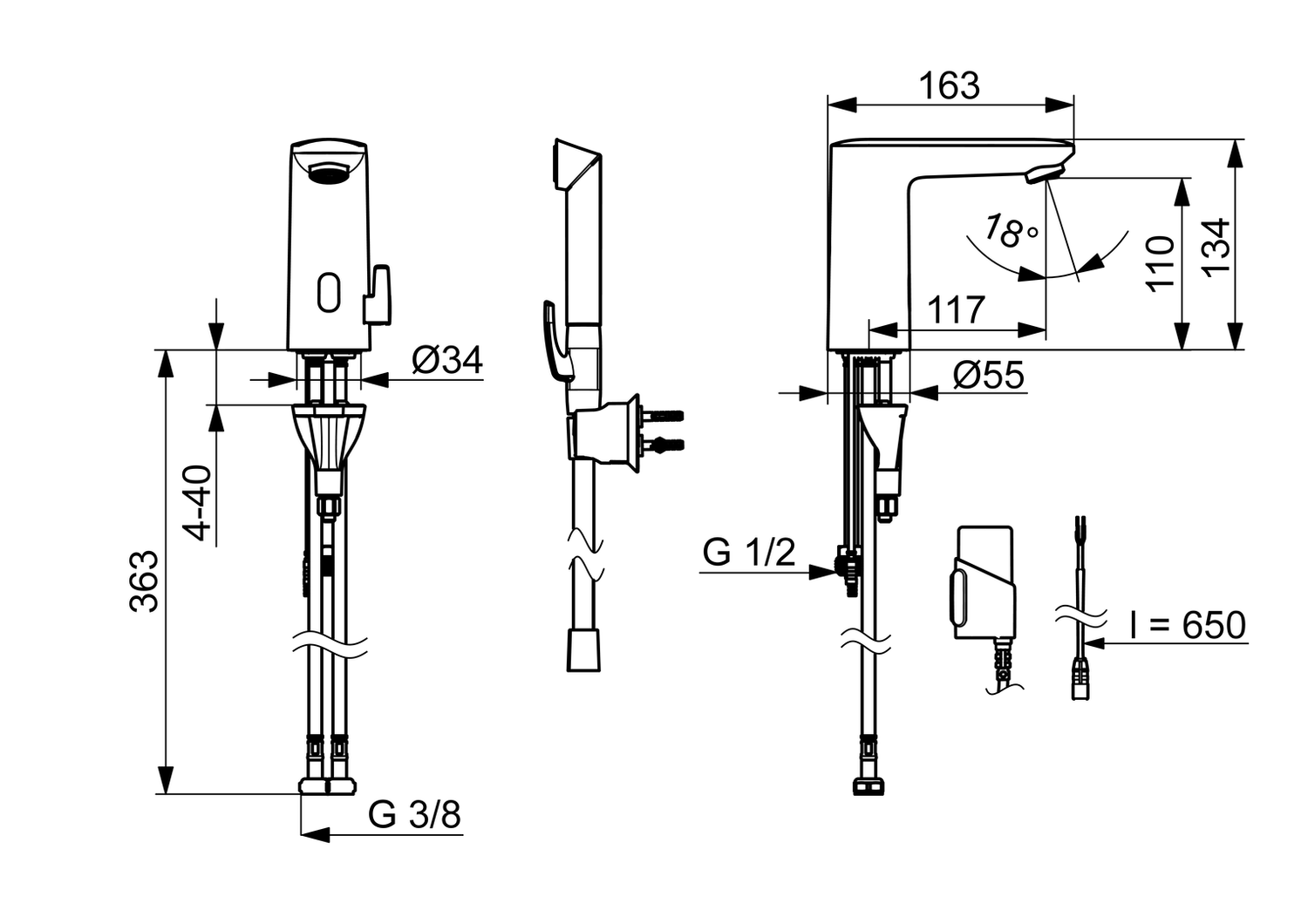 - suihkun osat: käsisuihku, suihkupidike, suihkuletku (1500 mm)