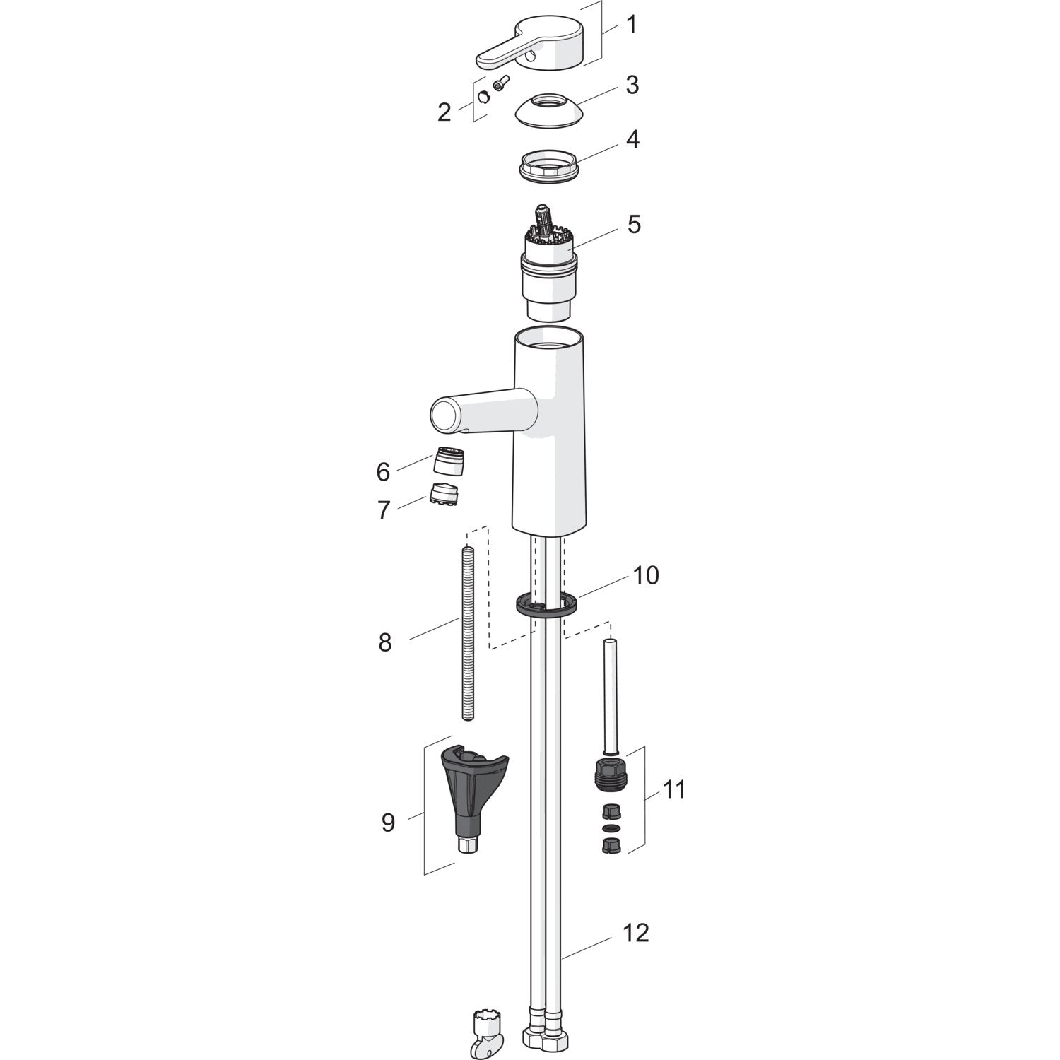 - vivun/kahvan tyyppi: yksi käyttövipu/kahva, kuuma/kylmä -symbolit
