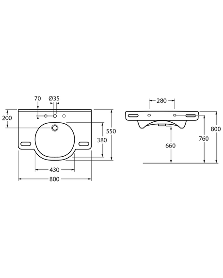 Pesuallas Gustavsberg Care 800x550x140 mm Tukikahvoilla
