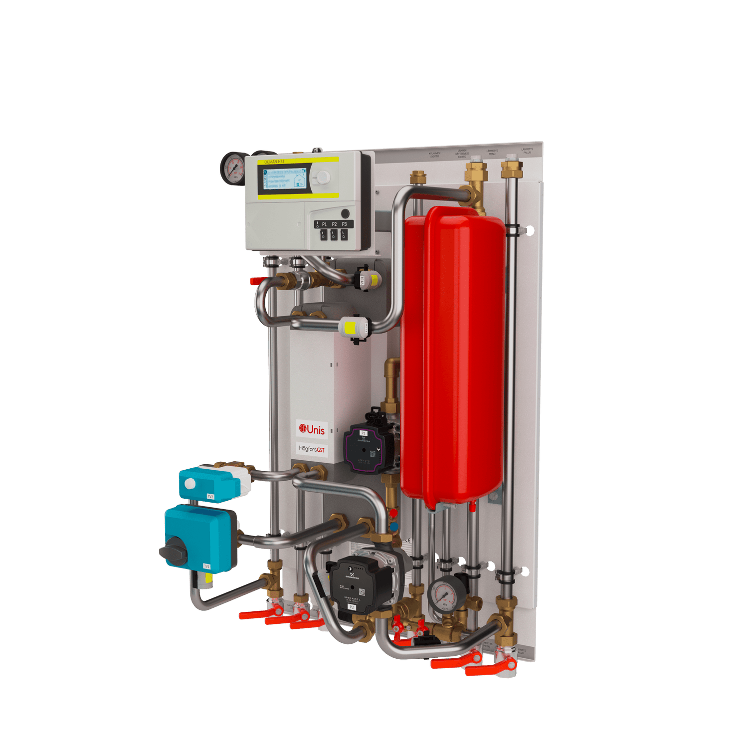 Unis 100-2RF -lämmönjakokeskus soveltuu erinomaisesti patteri-, ilma- ja lattialämmitteisten pientalojen liittämiseksi kaukolämmitykseen. Lämmönjakokeskus on kompakti, keveä ja ulkoasultaan erittäin huoliteltu. Unis 100-2RF-lämmönjakokeskus sisältää kaksi säätöpiiriä, joilla valmistuu lämmin käyttövesi sekä lämmitysverkon tarvitsema lämmin vesi. Lämmityspiirissä on vakiovarusteena pumpunpysäytystermostaatti lattialämmitysasennusta varten.