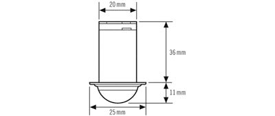 Mini-liikeilmaisin, jossa 360°:n tunnistusalueella kattoupotus- ja seinäasennukseen valaistuksen kytkemiseksi tarpeen mukaan, näin energiakustannukset alenevat tuntuvasti. Halkaisijaltaan jopa 6 m:n kantomatka sopii käytettäväksi pienissä tiloissa, läpikulkualueilla, WC-tiloissa, pienissä toimistoissa tai käytävillä, joilla päivänvaloa on vähän tai ei lainkaan. Kiinteästi tallennettu tehdasohjelma takaa välittömän käyttövalmiuden. Helppo ohjelmoida kaukosäätimellä. Tunnistusalueen laajennus kork. 5 ilmaisimen rinnankytkennällä. Pieni kompakti rakennekoko halkaisijaltaan vain 20 mm:n mittaiselle asennusreiälle. IP 65 -malli erityisesti myös kosteisiin tiloihin asennettavaksi. Kiinteä, 20 cm pitkä liitäntäjohto. Uusi universaali ESYLUX-liitäntätekniikka nopeaan asennukseen kattoihin, merkkikytkinkehyksiin, valaisimiin, upporasioihin, kaappeihin jne.. Upotettu kattoasennus ripustettuihin sisäkattoihin mukana tulevilla jousipitimillä tai kiinnitysrenkaalla. Merkkikytkinyhteensopiva uppoasennuksena seinään mukana tulevalla kiinnitysrenkaalla. Kohdistettu alueiden vaimennus mukana tulevalla linssimaskilla.