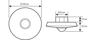 Upotettava liikeilmaisin ja 360°:n tunnistusalue kattoasennukseen. Kantomatka jopa 8 metriä kolmen metrin suositellussa asennuskorkeudessa, suurin sallittu asennuskorkeus on 5 m. Soveltuu käytettäväksi pienissä tiloissa ja läpikulkualueilla, joilla päivänvaloa on vähän tai ei lainkaan.