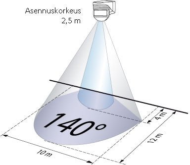 - valvontaetäisyys säädettävissä 12 m eteen ja 8 - 10 metriä sivuille