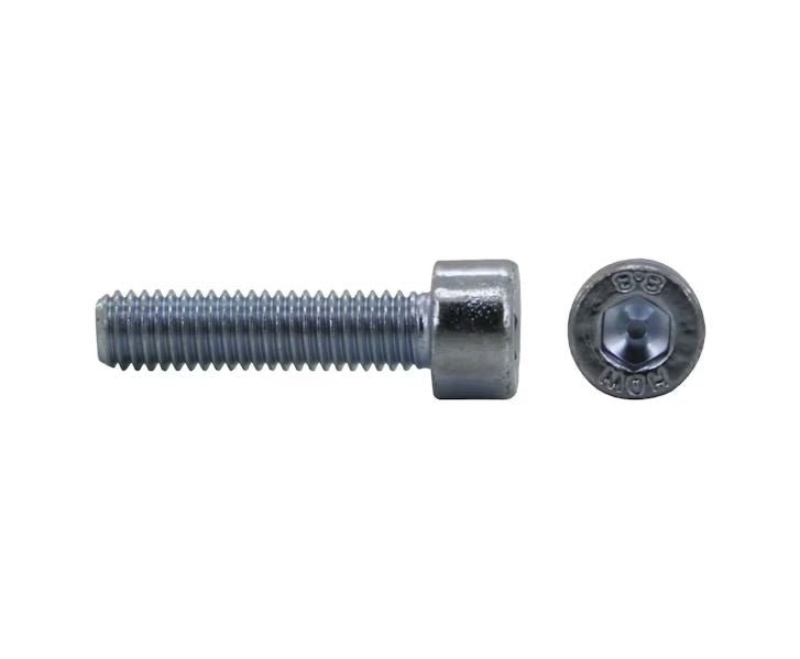Sähkösinkitty M5x10 mm kuusiokoloruuvi sisäkäyttöön. Avainkolo (s) 4 mm. Pituus kannan alta 10 mm. Kannan korkeus 5 mm, kannan halkaisija 8,5 mm. Täyskierre. Lujuusluokka 8.8. Pakkauksessa 100 kpl. DIN912/ISO4762.