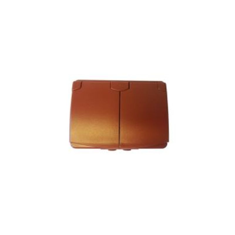 Pinta-asennettava koteloitu 2-osainen maadoitettu pistorasia turvasuluin. Pistorasiassa on ruuviliittimet ja liittimiin voi kytkeä enintään 2 johdinta. Liittimet ovat hyväksytty sekä ML että MK johtimille. Pistorasiassa on kalvoläpiviennit kaapeleille ylhäällä, alhaalla ja sivuilla.