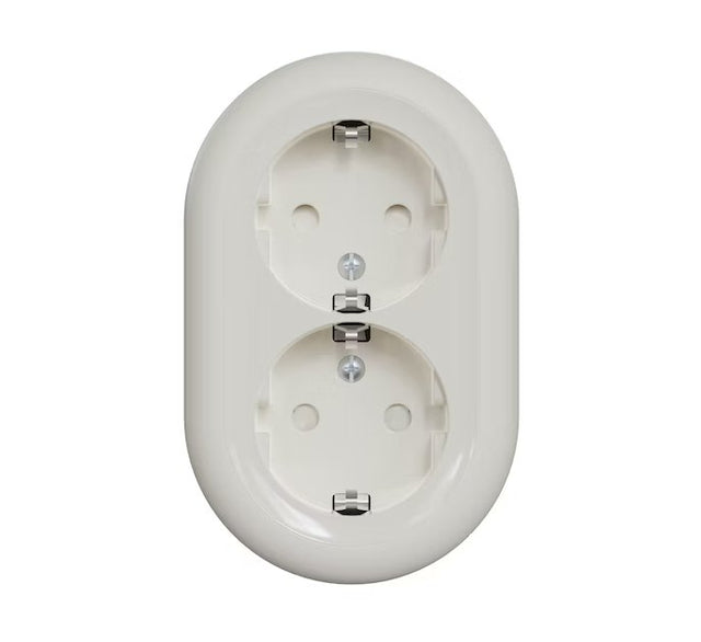Renova pinta-asennettava 2-pistorasia. Renova pinta-asennuskalusteiden klassinen retro tyyli sopii erityisesti vanhan tyyliseen sisustukseen.