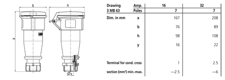 Voimapistorasia Mennekes 240A 32A 5P6H400V IP67 Uppo