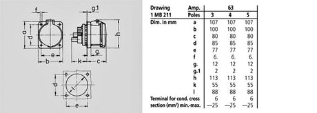 Voimapistorasia Mennekes 136A 63A 5P6H400V IP67 Pinta