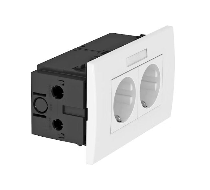 Kanavakaluste pistorasiapakkaus merkintäikkunalla, sopii asennettavaksi Rapid 80 -johtokanaviin ja ISS-pistorasiapylväisiin. Uppoasennuksessa ja levyseinäasennuksessa voidaan hyödyntää myös Modul 45 -sarjan monipuolisia toimintoja ja asennusystävällisyyttä. Optimoitujen asennustarvikkeiden avulla sarjan tuotteet voidaan mukauttaa kaikkiin ympäristöihin ja toteuttaa niiden avulla tilaa säästäviä asennuksia ½ - 3 moduulin kokoisina.