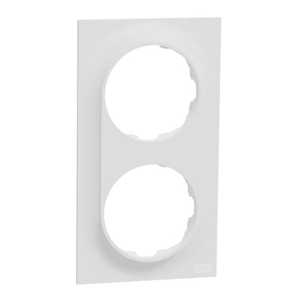 ELKO One 2-kehys valkoinen. Tuotteen mitat ovat (W) 87 mm x (K) 158 mm x (S) 10,5 mm. Se on valmistettu kierrätetystä polykarbonaatista (PC). Tuotteen väri on kirkkaan valkoinen (RAL 9003) ja se on mattapintainen. Se saavuttaa IP21-suojaustason.