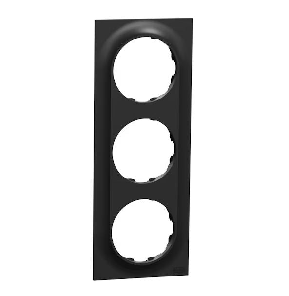 ELKO One 3-kehys musta. Tuotteen mitat ovat (W) 87 mm x (K) 229 mm x (S) 10,5 mm. Se on valmistettu kierrätetystä polykarbonaatista (PC). Tuotteen väri on musta (RAL 9005) ja se on mattapintainen. Se saavuttaa IP21-suojaustason.