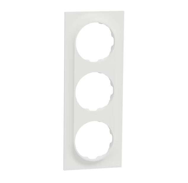 ELKO One 3-kehys valkoinen. Tuotteen mitat ovat (W) 87 mm x (K) 229 mm x (S) 10,5 mm. Se on valmistettu kierrätetystä polykarbonaatista (PC). Tuotteen väri on kirkkaan valkoinen (RAL 9003) ja se on mattapintainen. Se saavuttaa IP21-suojaustason.