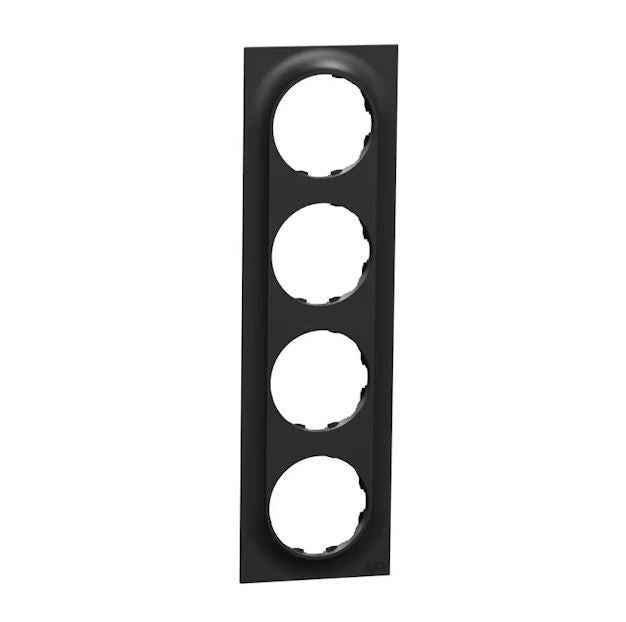 ELKO One 4-kehys musta. Tuotteen mitat ovat (W) 87 mm x (K) 300 mm x (S) 10,5 mm. Se on valmistettu kierrätetystä polykarbonaatista (PC). Tuotteen väri on musta (RAL 9005) ja se on mattapintainen. Se saavuttaa IP21-suojaustason.