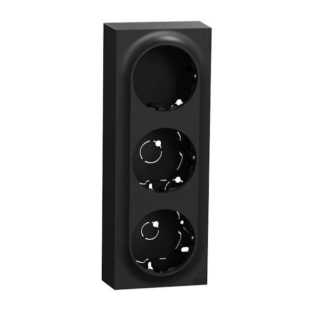 ELKO One 3-pintakojerasia korkea musta. Tämä korkea versio sopii kaikkiin toimintoihin ELKO One -valikoimasta, kuten jousiliittimillä varustetut kytkimet, pistorasiat ja valonsäätimet. Tuotteen mitat ovat (W) 87 mm x (K) 229 mm x (S) 45 mm. Se on valmistettu kierrätetystä polykarbonaatista (PC). Tuotteen väri on musta (RAL 9005) ja se on mattapintainen. Suojaustaso on IP21 ainoastaan, jos kaapeli tulee alakautta. Muussa tapauksessa suojaustaso on IP20.