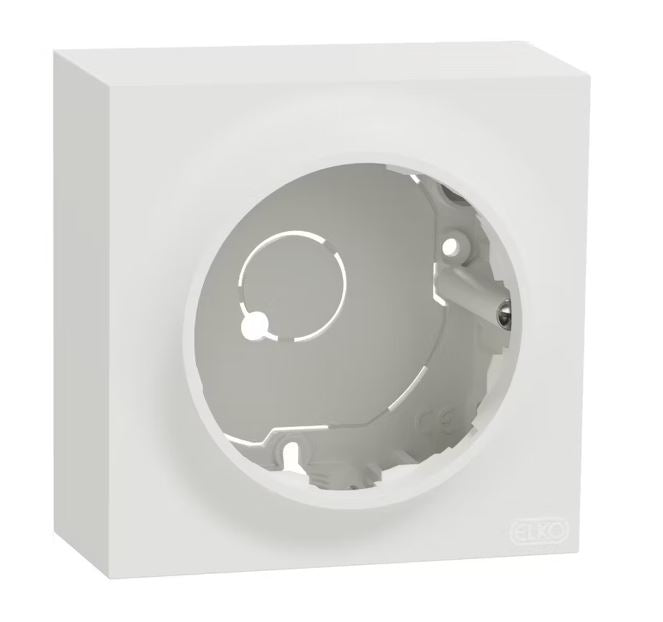 ELKO One 1-pintakojerasia korkea valkoinen. Tämä korkea versio sopii kaikkiin toimintoihin ELKO One -valikoimasta, kuten jousiliittimillä varustetut kytkimet, pistorasiat ja valonsäätimet. Tuotteen mitat ovat (W) 87 mm x (K) 87 mm x (S) 45 mm. Se on valmistettu kierrätetystä polykarbonaatista (PC). Tuotteen väri on kirkkaan valkoinen (RAL 9003) ja se on mattapintainen. Suojaustaso on IP21 ainoastaan, jos kaapeli tulee alakautta. Muussa tapauksessa suojaustaso on IP20.