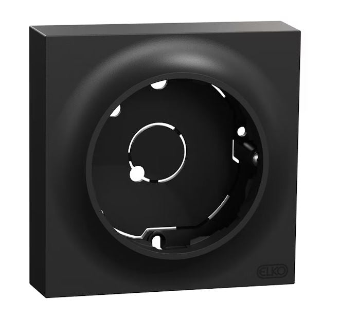 ELKO One 1-pintakojerasia matala musta. Tämä matala versio on optimoitu kytkimille, joissa on ruuviliittimet. Kun asennus tehdään olemassa olevan upporasian päälle, poistamalla pintakojerasian pohja, voidaan myös matalaan pintakojerasiaan asentaa