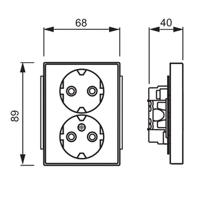 Uppoasennettava pistorasia. Pistorasiassa on liittimet kutakin kosketinta kohden ja niihin voi kytkeä max. 4 johtoa (haaroitusmahdollisuus). Liittimet on hyväksytty ML ja MK johtimille. Ei potentiaalivapaita liittimiä. Pistorasian runko on kosketussuojainen ilman peitelevyä.