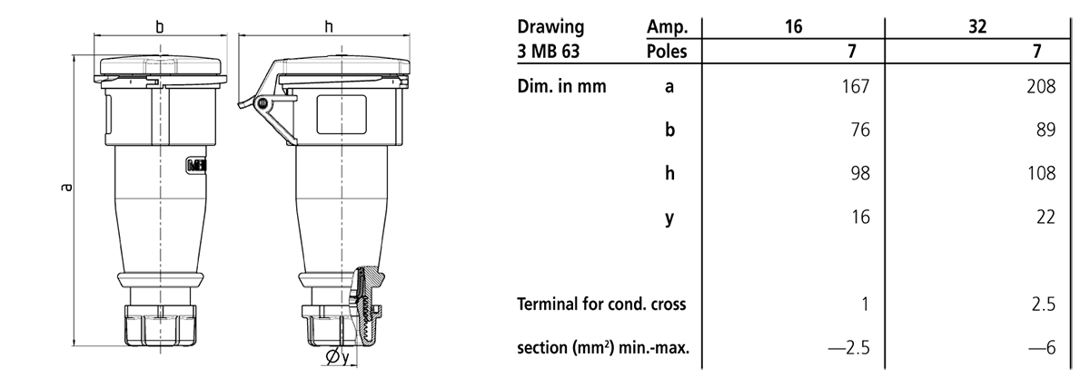 Voimajatkopistorasia Mennekes 746 16A 7P6H400V 7-napainen IP44
