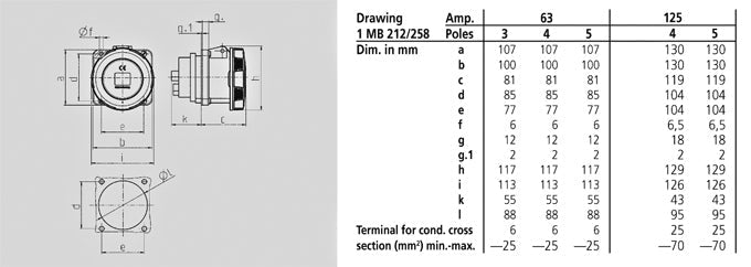 Voimapistorasia Mennekes 1128A 63A 5P6H400V IP67 Uppo
