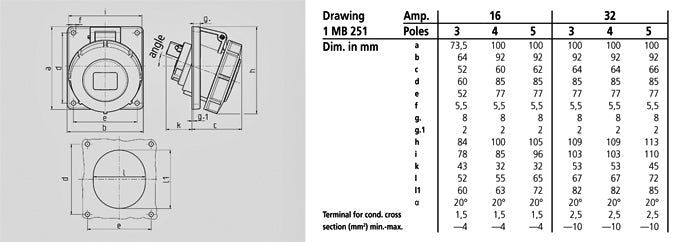 Voimapistorasia Mennekes 1485 16A 5P6H400V IP67 Vino