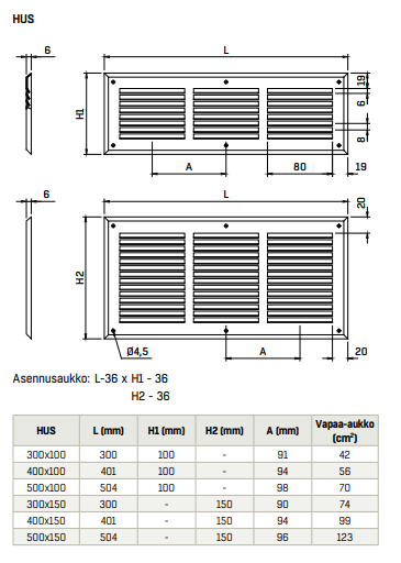 HUS-säleikköjä käytetään ovien ja tuulikaappien siirtoilma-aukkojen peitesäleikköinä ja ne ovat helppo asentaa.