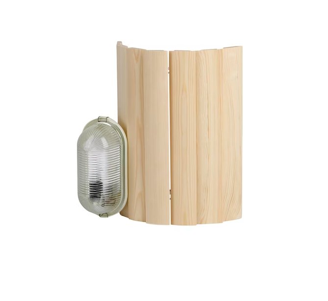 Saunavalaisin Ensto AVH15.1 IP44 Mäntyritilällä (seinään, pinta-asennus) AVH15.1, E14 max 60W,: Puuritilä (mänty), Ohjattavuus: on/off, SL II, IP44, Ei ketjutettava 2×1,5mm², Runko: Kestomuovia, Kupu: Lasia