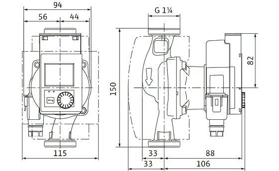 Märkämoottorikiertopumppu lämpimälle käyttövedelle kierreliitännällä, jumisuojattu EC-moottori ja integroitu elektroninen tehonsäätö.