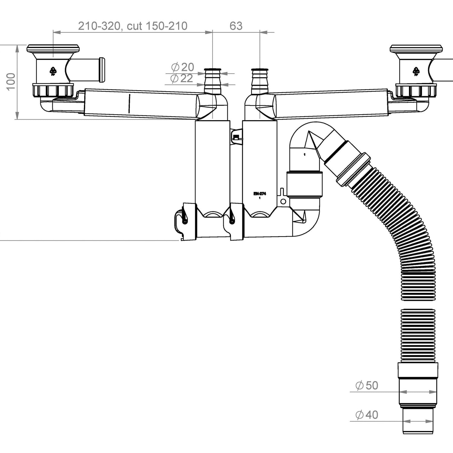 Keittiövesilukko Prevex Smartloc 2-altainen 70mm Sihti