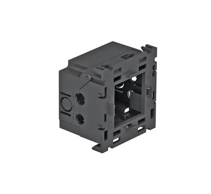 Modul 45 -sarjan edestä kiinnittyvä kojerasia, alaslaskettavalla ja tarpeen vaatiessa poistettavalla alaosalla kaapelien aikaa säästävään liitäntään, sisäänvientiaukot kaapeleiden 14 mm:n halkaisijaan asti.