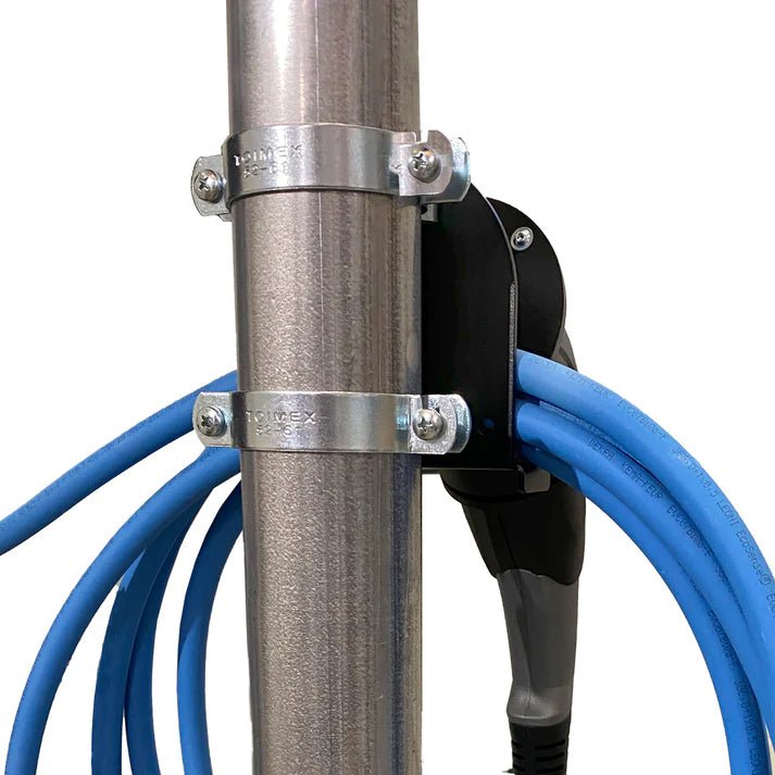 - Sopii käytettäväksi kaikille hybridi-/sähköautojen latauskaapeleille, kestää myös paksut ja painavat 32A kaapelit.