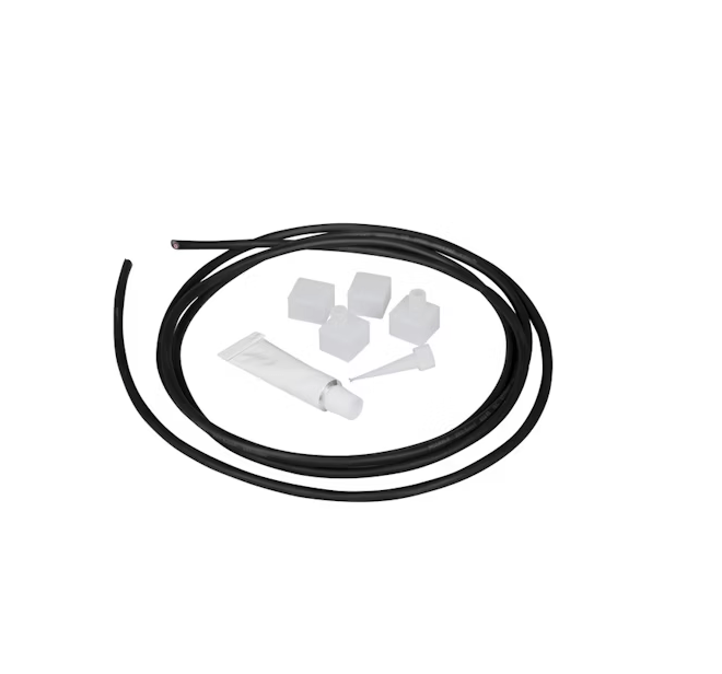 LEDstrip Neon Side IP67 -liitäntäsarja. Sisältää 2 päätetulppaa ja 2 kaapelien päätyliitäntää, 2 metriä (mustaa) kumipintaista kaapelia ja 10 ml:n silikoniputkilon.