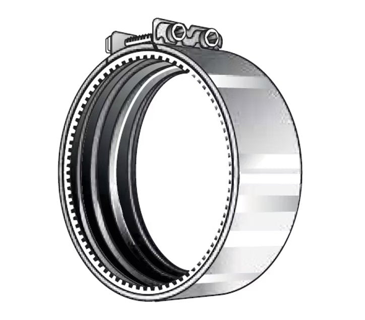 Pitkittäisvoimia ankkuroiva pantaliitin putki- ja osaliitoksiin. Käytetään esim. pohjakulman liittämisessä. Luo vetolujan putkiliitoksen, joka kestää kolmen barin sisäpuolisen paineen. Pannassa on ruostumattomasta teräksestä valmistetut kynsirenkaat, jotka estävät putkien päiden liukumisen ulos pannasta. Toimitetaan valmiiksi koottuna. Merkitty sinisellä tarralla