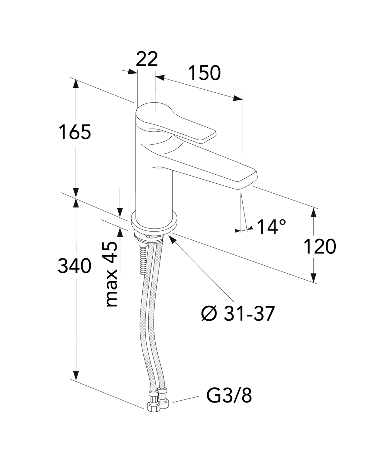Hanassa on joustava, tyyppihyväksytty 3/8” -liitäntä, joka tekee asennuksesta helpompaa.