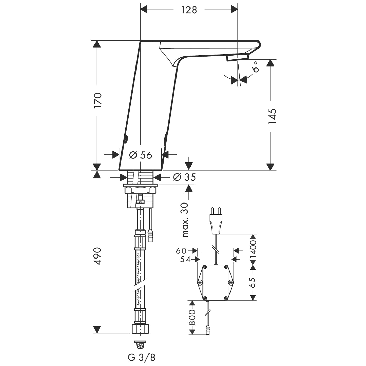 Hansgrohe Metris S elektroninen pesuallashana lämmönsäädöllä, 230 V pistotulppamuuntajalla