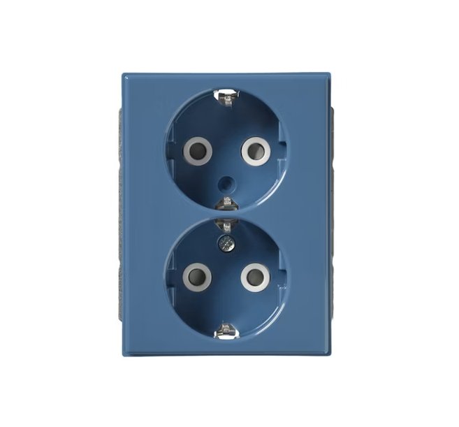 Uppoasennettava pistorasia. Pistorasiassa on liittimet kutakin kosketinta kohden ja niihin voi kytkeä max 4 johtoa (haaroitusmahdollisuus). Liittimet on hyväksytty ML ja MK johtimille. Ei potentiaalivapaita liittimiä. Pistorasian runko on kosketussuojainen ilman peitelevyä. Väri sininen (RAL5007).