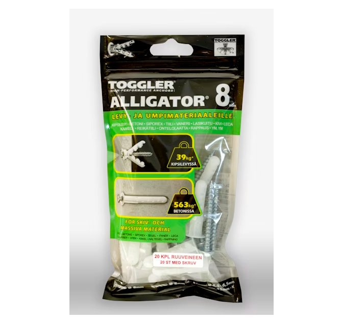 Seinätulppa Toggler Alligator 8 mm AF8-20 Ruuveilla 20 kpl