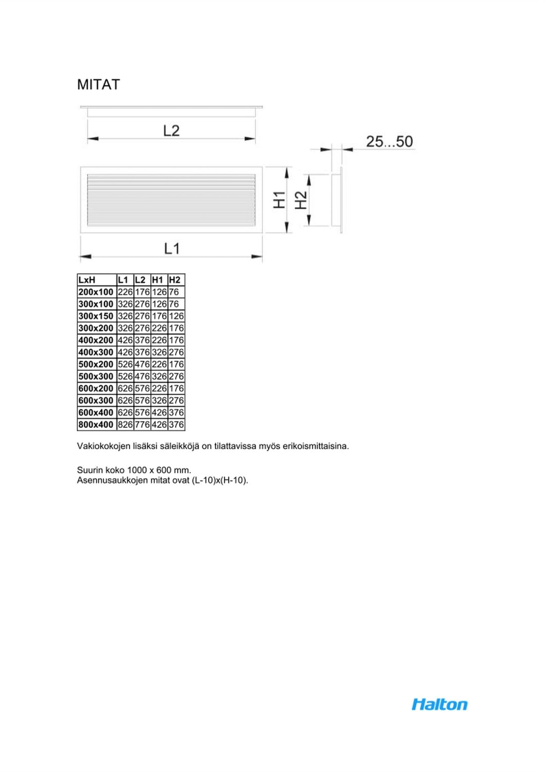 Siirtoilmasäleikkö Halton TVC OF 500x100 Valkoinen on jälkitoimituksessa ja lähetetään heti kun on saatavilla